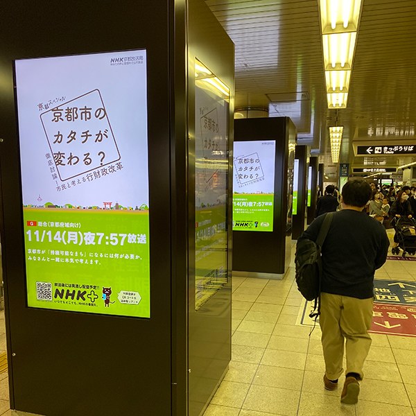 弊社は、京都市交通局指定代理店で主に京都の交通広告を取り扱っております。また、京都市屋外広告業登録業者であり、屋外広告(OOH)も広く手掛けている広告代理店です。近年は、当たり前に見かけるようになったデジタルサイネージへの掲出やWebサイト、チラシなどのデザインや制作にも力を入れております。